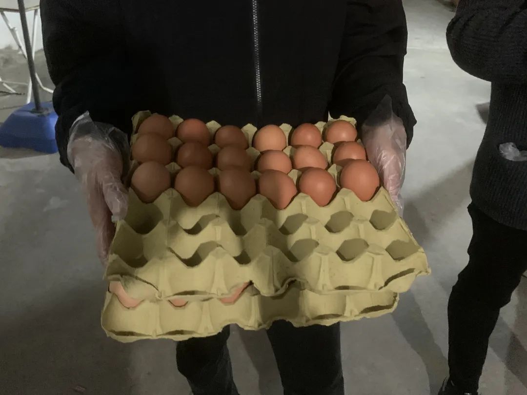 月黑风高,当晚志愿者送错了2份,放在了没订购人家的门口。每份24枚,最终找回48枚鸡蛋。