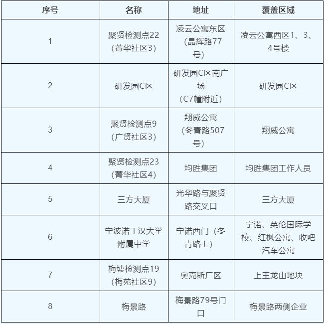 9.七塔社区、后塘社区共设一个采样点:为宁铸中心2号楼点位(宁波塔对面宁铸中心中间)。