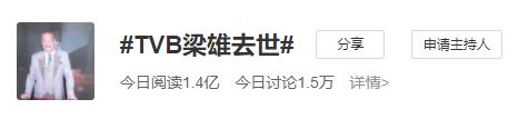 4月13日,据港媒报道,TVB资深演员梁雄近日去世,他的女儿也向外界证实了父亲离世的消息。梁雄的女儿在讣告中表示,父亲离世时,家人均陪伴在身边,父亲走的很安详。