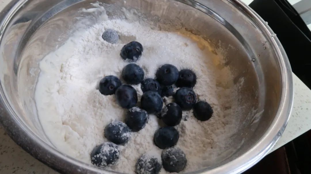 面粉、蓝莓、温水、酵母、糖、盐