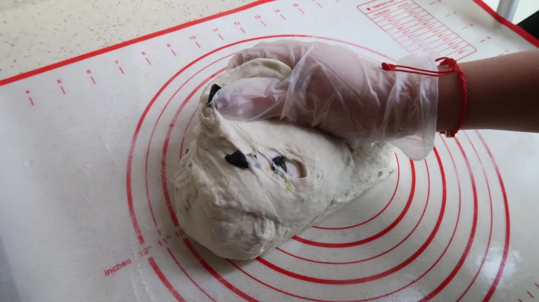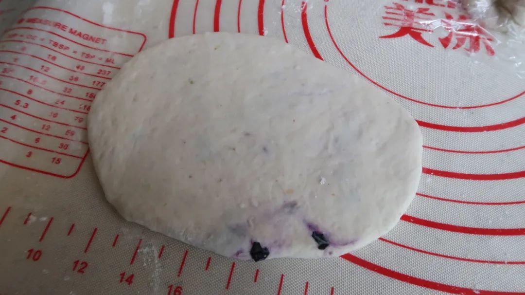 在面团中加入1克酵母、240克面粉、10克盐、10克糖、90克蓝莓。