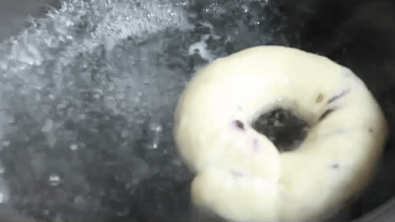 1升水烧开,加入40克白糖,将贝果面团每面煮20-30秒,捞出并沥干水分。