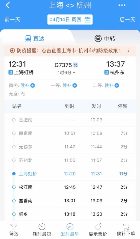 同时,近期,全国铁路车票预售期已调整为5天,一些车次极少的列车,车票尤其紧张,甚至开售当天就已经售罄,4月13日上海虹桥至杭州东站的车票,实际上在上海公布第一批“三区”名单前已经售罄。