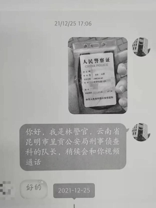 “我是云南省昆明市公安局呈贡分局刑事侦查科队长,稍后会和你视频通话。”
