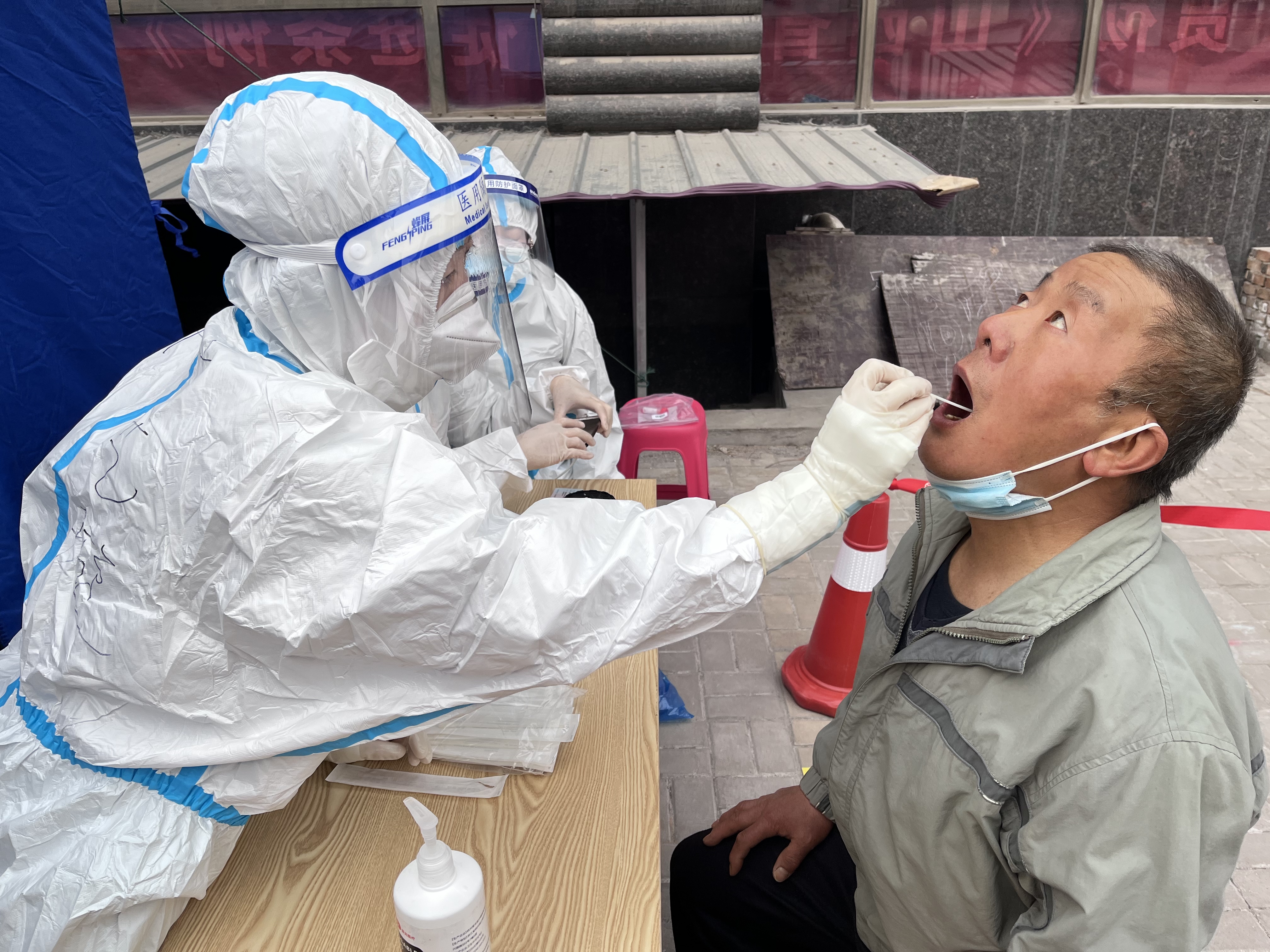 “请把口罩摘一下,别紧张,张大嘴巴……” 早上6点,天刚蒙蒙亮,在东仓巷社区干休所门口文化广场核酸采样点, 26岁的采样医护人员侯杰琳一边说着一边熟练地拿出棉签,完成采样后将样本放进试管中。随后,立刻进行消毒,为下一次采样做好准备。