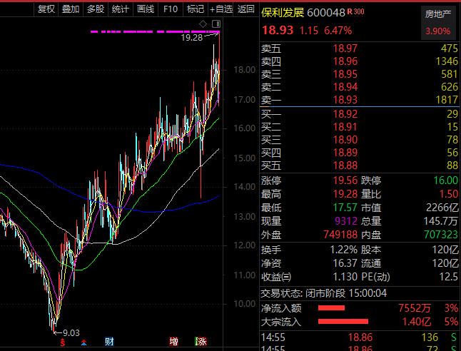 不仅是食品饮料板块,煤炭板块以及房地产也同样大幅上涨。煤炭股方面,安源煤业、云维股份、山西焦化等多只个股涨停,龙头陕西煤业再创历史新高。地产股方面,泛海控股、京能置业、渝开发等多只个股涨停,龙头保利发展再创历史新高,总市值逼近万科A。