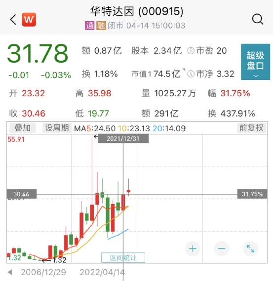 去年华特达因股价累计涨幅为31.75%,今年以来累计涨4.33%。