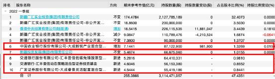 广汇能源2022年一季报显示,陆彬管理的两只基金重回广汇能源前十大流通股东名单。汇丰晋信低碳先锋、汇丰晋信动态策略分别持有6441万股、5615.3万股,持有市值为5.28亿元、4.60亿元,位列第8、9大流通股东。