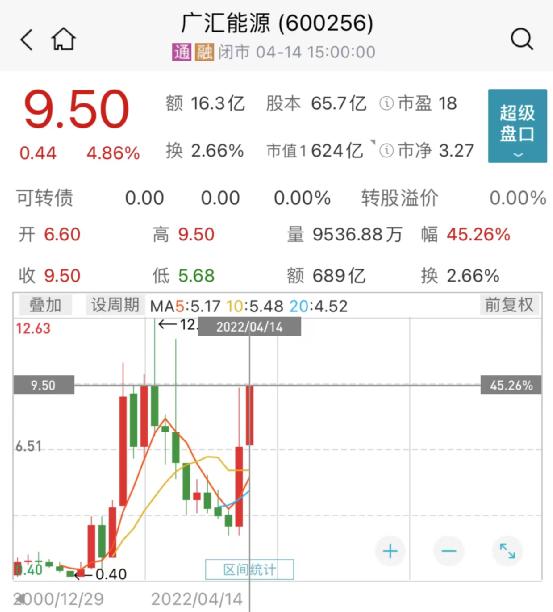 广汇能源去年股价累计大涨131.10%,今年股价累计涨幅为45.26%。