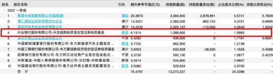德方纳米2022年一季报显示,谢治宇等人管理的兴全趋势投资新进成为前十大流通股东,截至一季度,该只基金持有德方纳米108.9万股,持有市值6.19亿元,位列第4大流通股东。