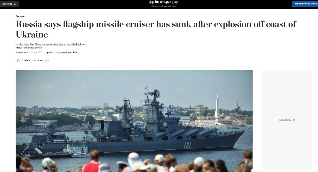 包括CNN在内的众多围观此事的美西方媒体表示目前还无法独立核实哪方说法更可信。美国国防部此前亦表示还无法确认“莫斯科”号出事的原因。不过,CNN表示,如果“莫斯科”号真是被乌克兰的“海王星”反舰导弹击中,这将是这款基于苏联的Kh-35反舰导弹研发而来、去年才被乌克兰军方启用的武器,首次在俄乌冲突中取得重要战果。