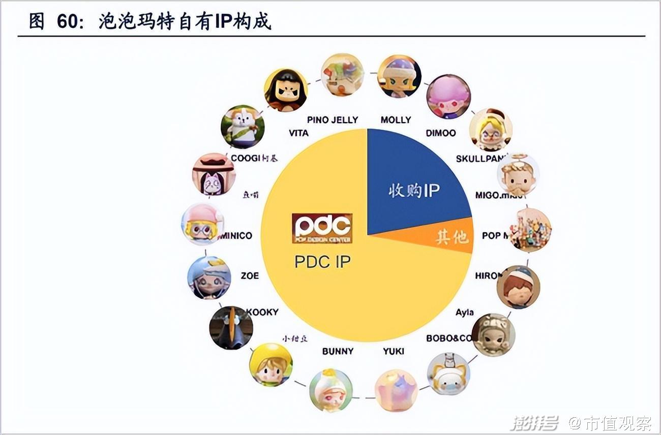 泡泡玛特的自有IP主要来自两部分,一部分是由公司内部设计师团队开发,简称PDC(Pop Design Center),另一部分是公司收购的头部艺术家IP。