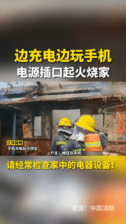 中国消防提示:请经常检查家中电器设备,不要充着电玩手机。