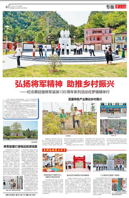 东南一景美如画,廷锴故里面貌新。4月14日,纪念蔡廷锴将军诞辰130周年系列活动在罗定市罗镜镇举行,活动主题是“弘扬将军精神 助推乡村振兴”。