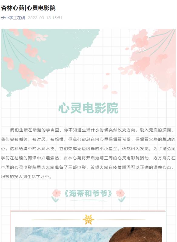 针对学校隔离和封闭管理的学生,辅导员老师一对一开展谈心谈话和心理疏导,为学生发放心理解压小玩具,缓解学生心理压力。学校组织全体学生开展心理健康测试,开展线上心理团体辅导、“同心抗疫”主题班会,制作“疫情期间学生心理健康自助指南”,开展线上“心理情景剧剧本赛”“心理知识问答”等活动,“杏林心苑”微信公众号推送《心理知识小课堂》《心灵影院》《方舟电台》《“心”书推荐》等40余条推文,并结合“国际幸福日”“世界卫生日”等时间节点推送相关内容,引导、帮助全体学生关爱自我、快乐生活。