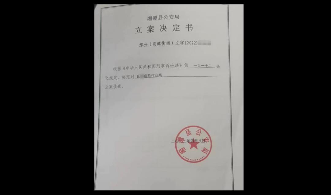 4月8日,驾驶人兼车主田某因涉嫌危险作业罪被湘潭县公安局采取刑事强制措施。