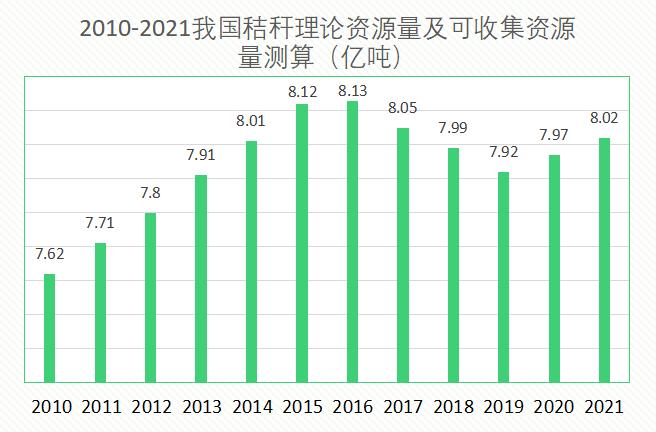 2010-2021 我国秸秆理论资源量及可收集资源量测算