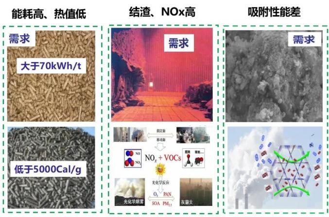 目前秸秆生物质的主要利用方式有肥料化、饲料化、基料化以及能源化。其中能源化利用是将秸秆类原料转化为成型燃料、可燃气、生物油等利用途径,具有技术手段多样、利用量大、经济效益高等优势。但是,秸秆生物质的能源化利用同样存在诸多技术难点。首先,由于秸秆资源具有产地分散、能量密度低、容重小、运输不方便等缺陷,在转化利用前往往需要先进行提质改性预处理(如压缩、炭化等)。而目前的生物质成型/炭化设备面临着粉尘大、能耗高、自动化程度低等问题。同时,在秸秆燃烧利用过程中,传统的燃烧方法在较低温度下会产生大量焦油,导致能量利用率降低,而在高温下燃烧又会出现氯碱腐蚀,结渣、氮氧化物排放高等问题。此外,秸秆的不完全燃烧产物生物炭,由于孔隙率低、应用性能(如吸附性能)较差,难以得到有效的利用,导致了生物炭资源的严重浪费。
