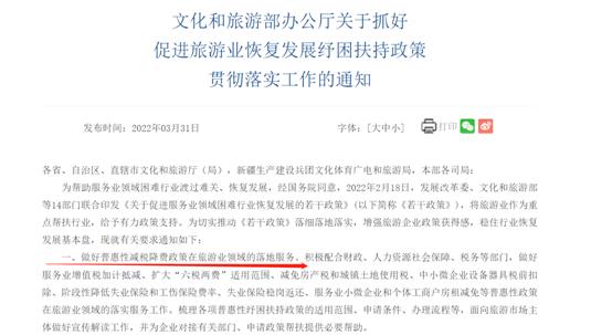 在疫情反复的情况下,旅游业受到冲击。但从近期政策层面看,旅游行业利好频出,如文旅部拿出十大举措来促进服务业领域困难行业恢复发展,并发文通知旅行社可全额暂退保证金或暂缓缴纳。