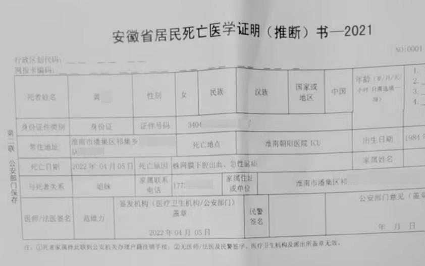 近日,安徽淮南黄女士发布视频称,妹妹黄某乙被妹夫家暴,在ICU住院5天后死亡。4月15日上午,黄女士告诉红星新闻记者,法医将在下午对死亡原因进行鉴定。
