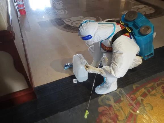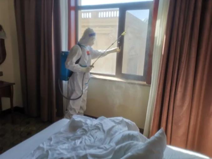 这次驻外任务,我们被安排住在几个隔离点附近的另一家酒店。到酒店后,和疾控中心一位工作人员碰了个面,我们大致了解了接下来需要做的具体工作--隔离人员核酸检测阳性的,待人员转移离开后,我们对房间和走廊进行消杀,这样的任务有一定的危险性,但是我们义不容辞。