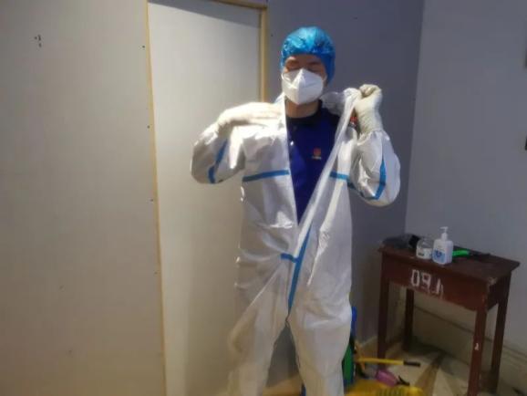 今天上午第一次出任务,去清枫丽舍酒店,我们跟着昨天疾控中心那个大哥一起去熟悉了一下流程。穿上防护服,我们互相检查好之后进到了隔离区域。看着走廊四壁的薄膜,寂静的空间,能听到的只有自己的呼吸声和喷雾器工作的声音,我感觉心里一下子就紧张了起来,心跳加速,直到出来之后才长舒了一口气,脱了防护服的刹那感觉整个人都轻松了。