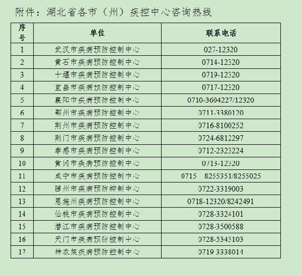 一、2022年4月9日(含)以来有浙江省金华市婺城区白龙桥镇、河南省郑州市航空港区、吉林省松原市长岭县、黑龙江省哈尔滨市双城区和南岗区、云南省文山州马关县、辽宁省大连市金州区友谊大道、山西省朔州市应县、江苏省苏州市吴江区江陵街道和盐城市射阳县海河镇旅居史的来鄂返鄂人员在做好个人防护的情况下,请主动向当地社区进行健康申报,并配合当地疫情防控指挥部的所有防控措施。如有疑问或转码有误可拨打我省各级疾控中心咨询热线(号码附后)。