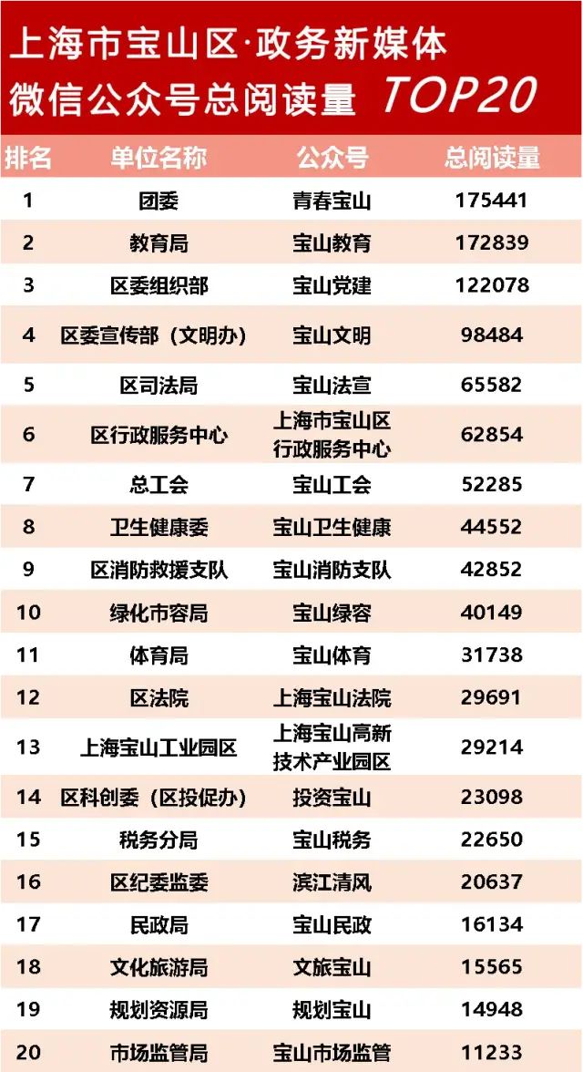 原标题:《2022年3月宝山政务微信公众号榜单新鲜出炉!》