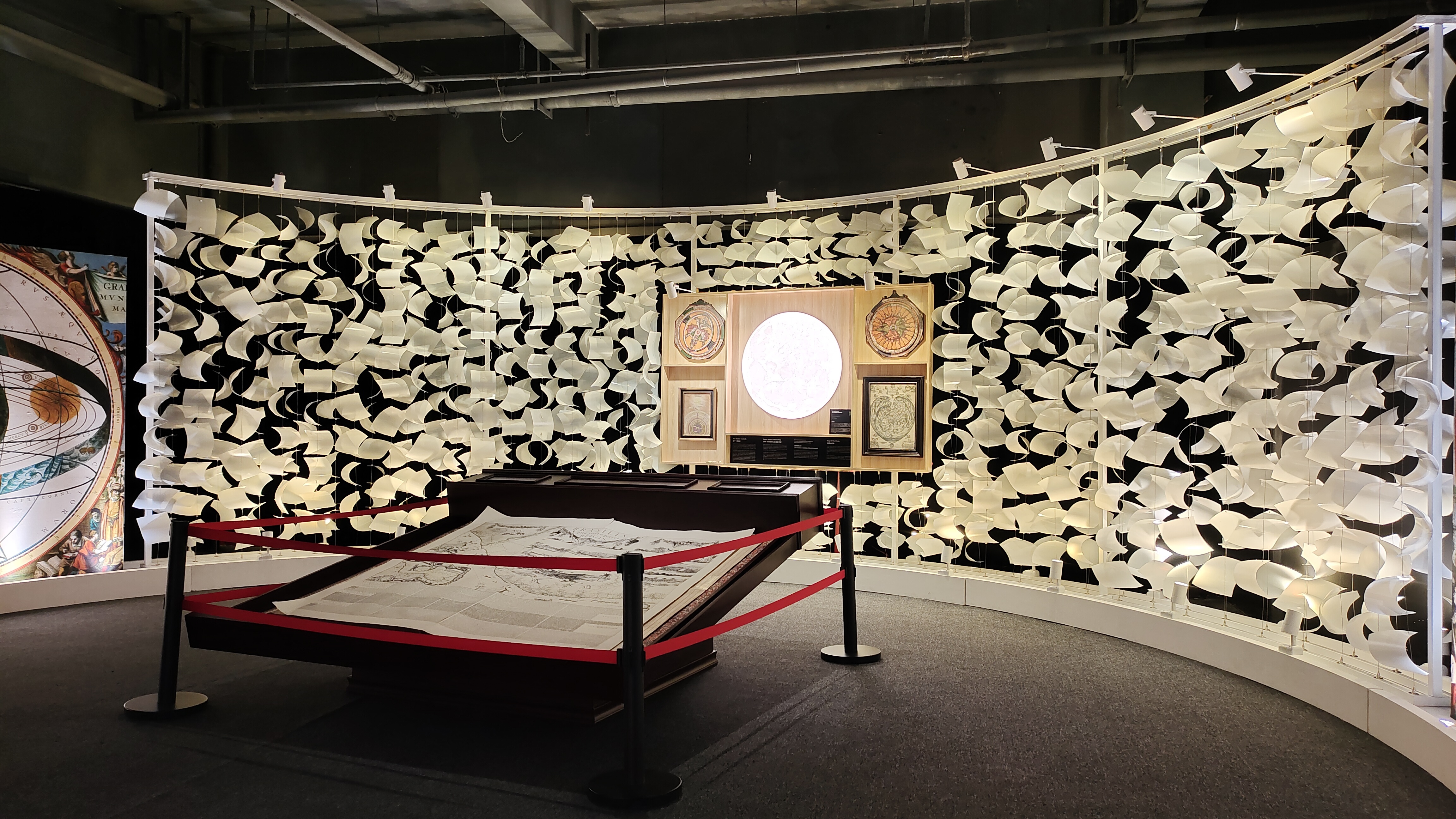 展览由序厅正中央纵1.78米、横1.05米的世界最大地图集之一《克兰基地图集》娓娓道起,近百件出自大英图书馆世界级珍藏的重印制品,在回环延伸的展廊中层层“揭秘”:世上仅存含有莎士比亚手迹的稿件,狄更斯的《雾都孤儿》手稿,莫扎特的音乐笔记,伽利略关于太阳黑子的信函,牛顿关于重力图表的手稿,《荷马史诗》的镂空投影,安徒生童话的迷宫布景……数百年前的哲学、文学、科学、音乐等领域中的“关键像素”,一块一块拼出世界文明的缩略图景。