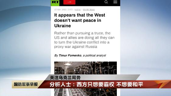 对此,今日俄罗斯电视台新闻网援引俄政治分析人士的话报道称,西方的一系列举动表明,他们只想维持自己的霸权地位,根本不想让乌克兰实现和平。