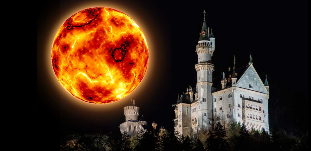 45亿年前的夜空中,巨大的月亮比今天亮几百倍。晴朗的月夜里不需要灯光就可以看书,我们站在地球上,仅凭肉眼就可以观察月球上的火山喷发,火红色的岩浆在夜空中悬着的巨大大圆盘上一点点渗出。
