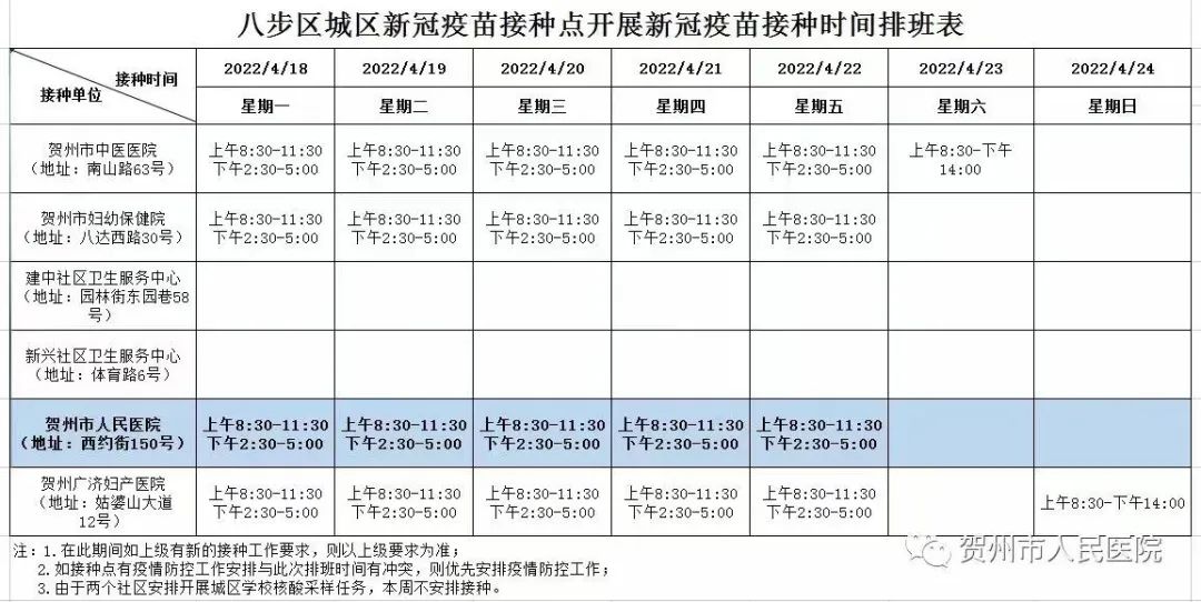 八步区城区新冠疫苗接种安排