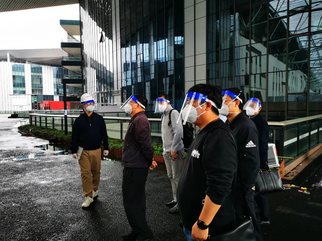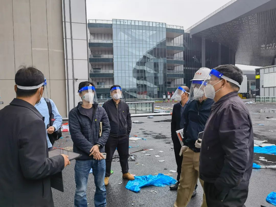 文中图为专班同志陪同上海市人民政府副秘书长赵祝平同志在国展中心实地研究专用厕所选址工作。