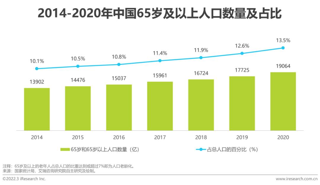 作为世界上唯一老龄人口过亿的国家,第七次全国人口普查结果显示,较2010年第六次全国人口普查,我国60岁及以上人口占比上升5.4%,其中65岁及以上人口占全国人口的13.5%,老龄化进程加快;老龄人口基数大、慢性疾病患病率高,我国65岁以上人群患慢性疾病比例为62.3%,且据统计直至2020年,由慢性病导致的疾病负担占总疾病负担的近70%,导致的死亡人数占我国总死亡人数的86.6%。老年护理已成为中国社会的“刚需”,解决老年护理的供给不足,保障高质量老年生活是人民日益增长美好生活的重要组成部分。通过信息化手段介入来优化医疗保障体系、促成养老模式的创新发展,实现“老有所养”、“智养质养”可极大程度减轻由人口老龄化、慢性疾病等引起的医疗服务负担。
