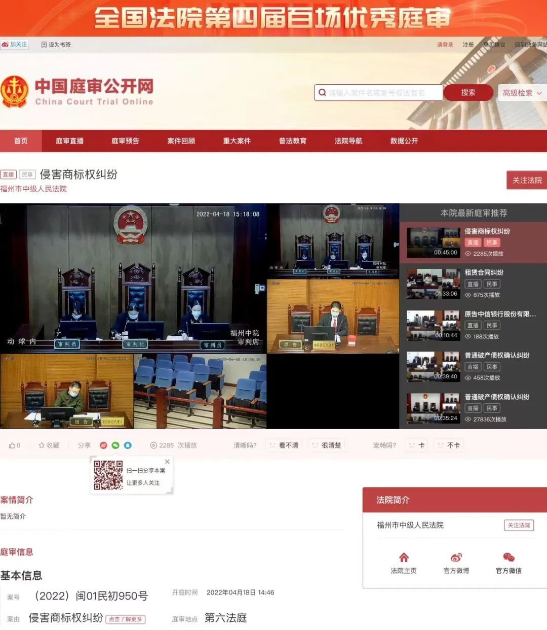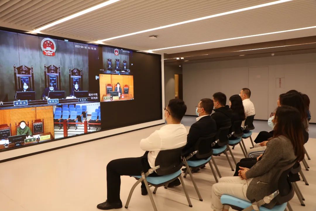 该场庭审网络直播在福州法务区还受到了广大群众和法律工作者的高度关注,纷纷驻足观摩。