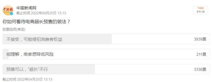 大家有多讨厌超长预售?中国新闻网微博18日发起投票【你如何看待电商超长预售的做法?】,截至发稿,仅有不足3%的网友能理解商家这种行为。