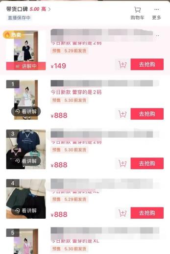 △电商平台上,某店铺直播多款商品均为预售