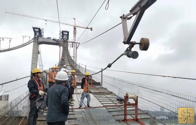 缆索架设将按照“白天牵引、夜间调索”的循环施工模式,采用“双线往复式”大循环系统牵引法作业,每天能完成6根左右索股的牵引任务,比传统的“单线往复式”牵引法作业效率更高、安全性能更好,提高工效近2倍。