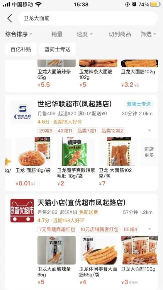 今天是卫龙决定执行新调整价格的第一天。杭州线上和线下商超平台销售的品牌辣条都涨价了吗?