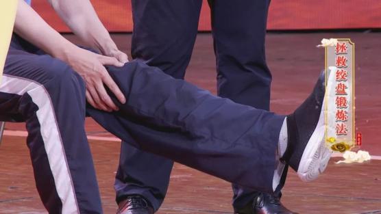 在膝关节后方(腘窝部)垫一个毛巾卷,向下压毛巾卷伸直膝关节,坚持5秒钟后放松,两腿交替;一天3-4组,一组15-30次。