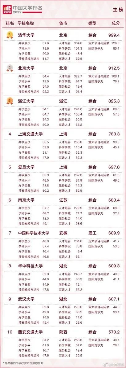 高等教育评价专业机构软科今日正式发布2022中国大学排名。