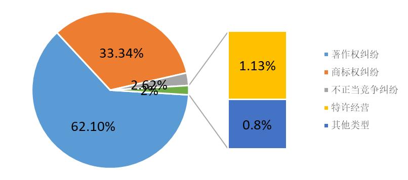2019年至2021年度,义乌法院累计受理著作权纠纷2794件,占知识产权民事案件总数的62.10%;商标权纠纷1500件,不正当竞争纠纷118件,特许经营51件,其他类型纠纷36件,当事人分布24个国家和地区。