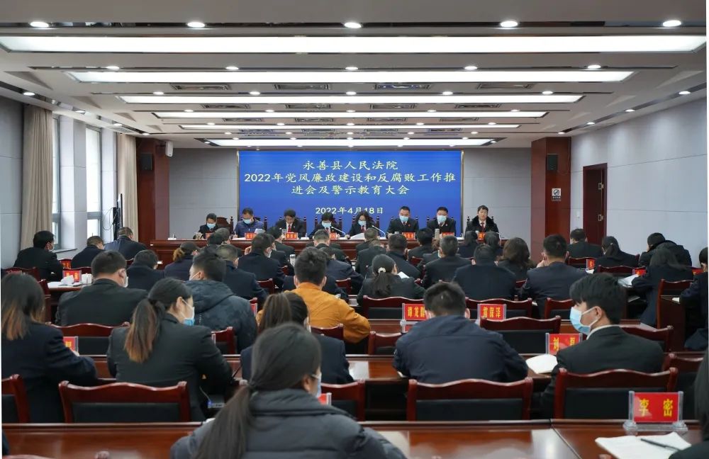 4月18日,永善法院组织召开2022年党风廉政建设和反腐败工作推进会,县纪委县监委派驻法院纪检监察组组长肖字钦,院党组班子成员及全院干警参加了会议。