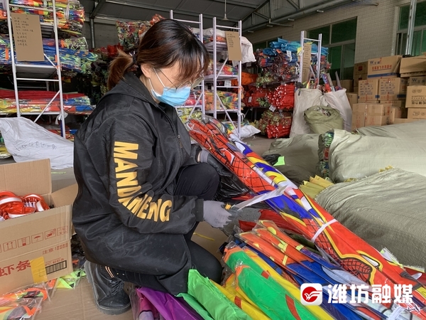 坊子工业发展区王家庄子村的风筝企业员工忙着发货。