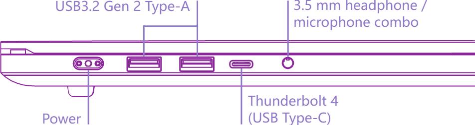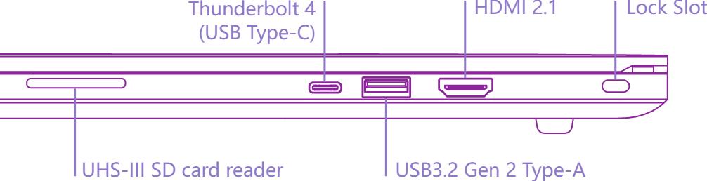 在端口选择方面, Tensorbook 有两个 Thunderbolt 4 端口、三个 USB-A 端口(3.2 Gen 2)、HDMI 2.1、一个耳机插孔和一个 SD 读卡器。