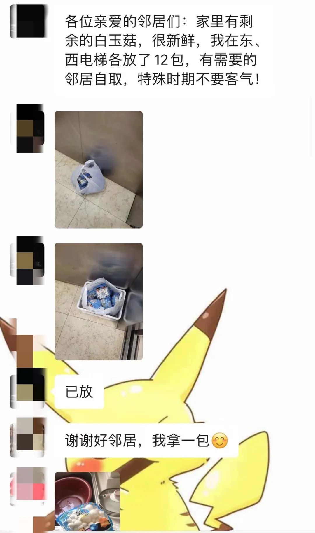 住了几年都不知道有多少邻居的楼栋,还自发成立了“暖心互助”的楼组群,谁家有多的物资就拿出来一起分享!