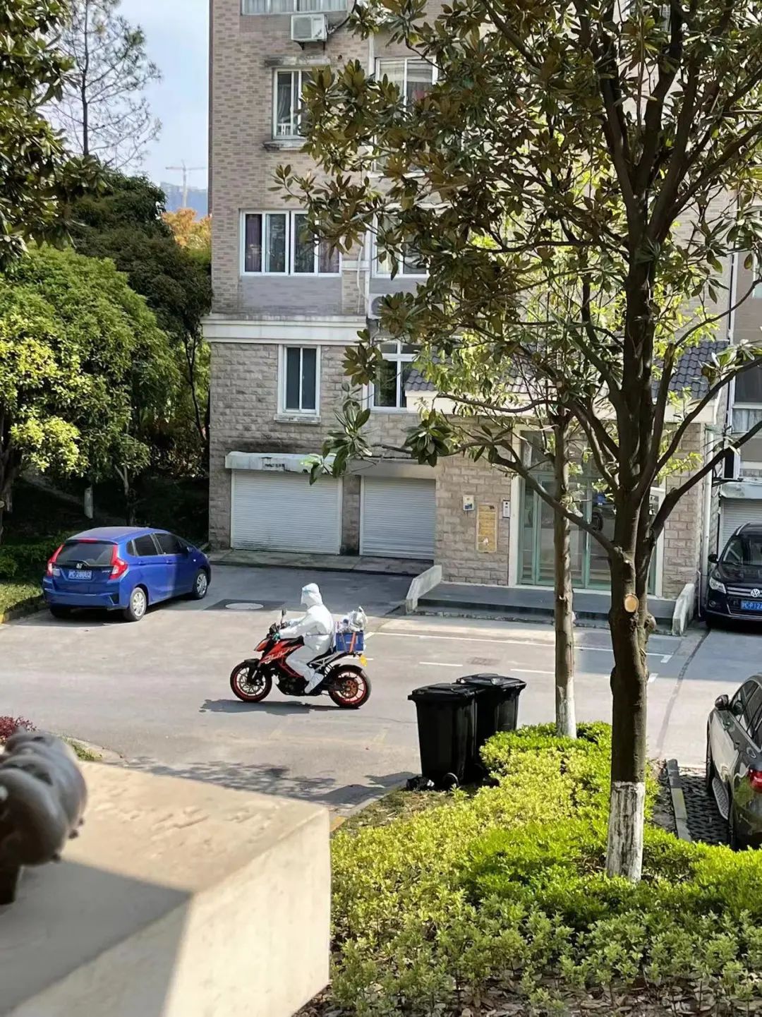 一眼认出了隔壁家“酷酷”邻居的私家摩托,没想到不苟言笑的他也去申请成为志愿者卖力为大家送菜啦!