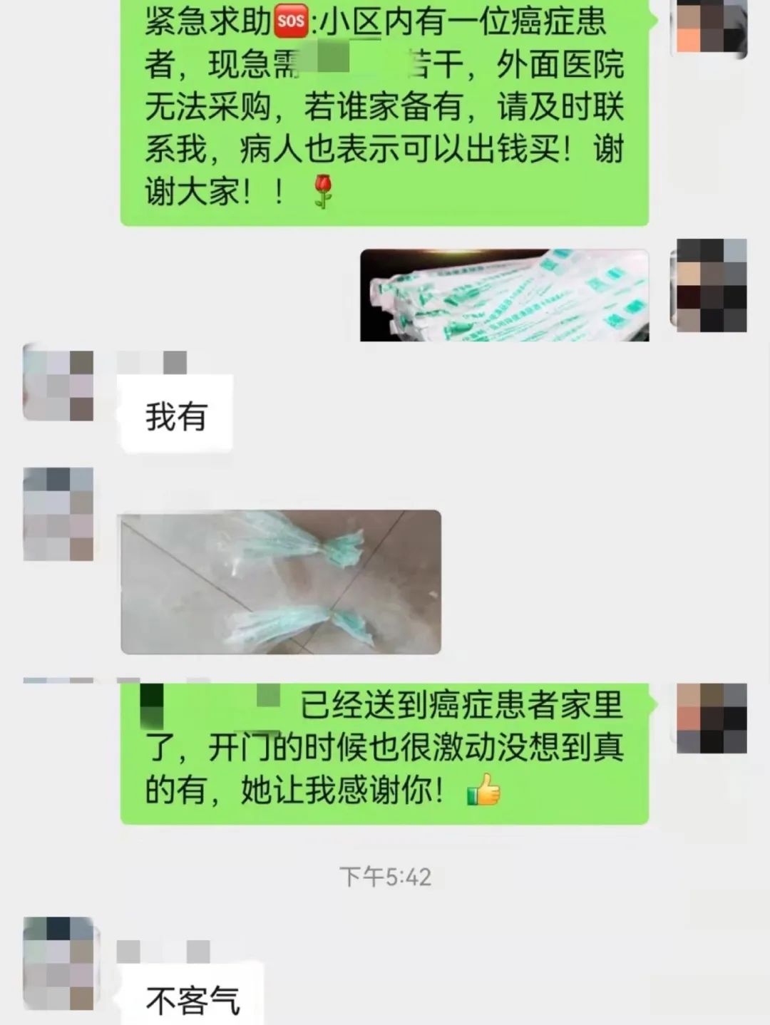“神通广大”的邻居甚至送来了癌症病人急需的医疗物品,缓解了邻居家的燃眉之急。