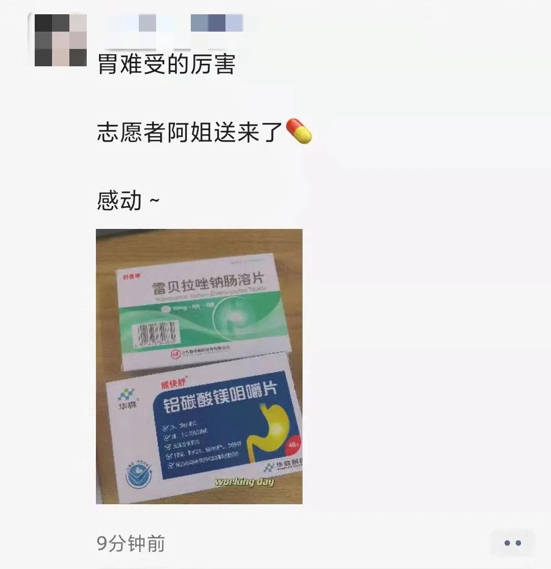 听闻居委工作人员胃疼,居民志愿者便立即送来了“胃药”,平日里的“阿姐”可不是白叫的,有事她可真上!