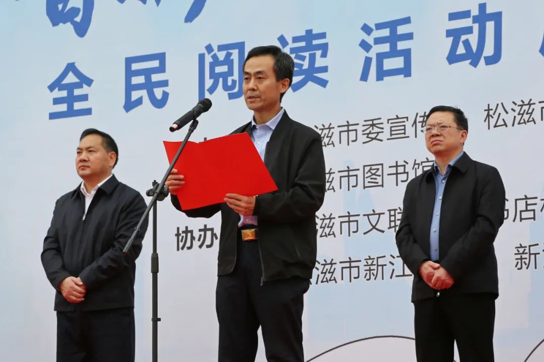 阅读新时代,奋进新征程。沈先武向全市人民推荐4本书籍:《从工业化到城市化:未来30年经济增长的可行路径》《引爆招商:招商加盟与社群裂变》《中国拱市:从脱贫攻坚到乡村振兴》《我们为什么能够成功——党的百年奋斗重大成就和历史经验》。荆州市文化和旅游局局长付良超,松滋市市委常委、宣传部长王权武,市人大常委会副主任代阳云,副市长马香菊,市政协副主席邹璇参加全民阅读启动仪式。